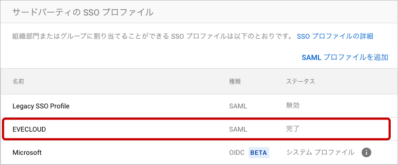 EVECLOUDユーザーのSAMLログイン設定
