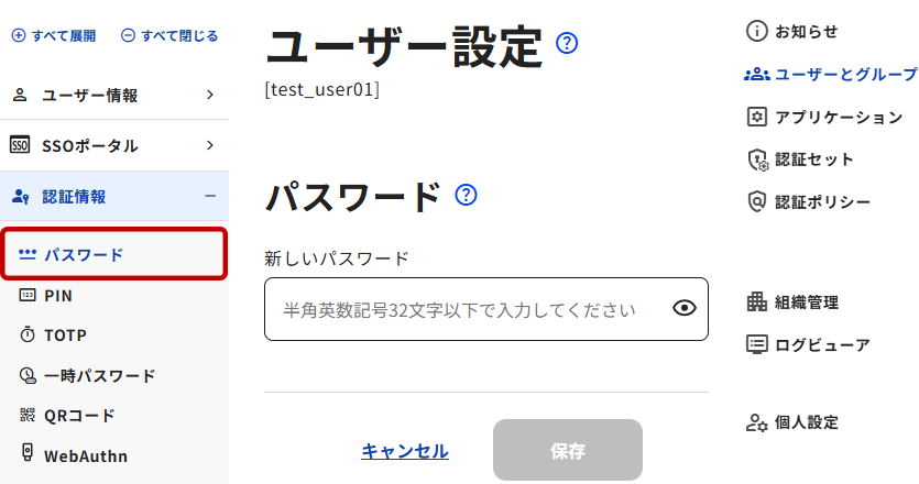 ※ パスワードのポリシー設定は、管理ツールの「認証ポリシー」から行えます。