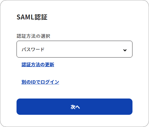 - 認証方法を選べる場合は[認証方法の選択]が表示されます。任意の認証方法を選び、[次へ]を選択してください。