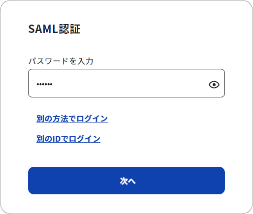- 提示された認証方法に従って、認証情報(パスワードなど)を入力して[次へ]を選択してください。