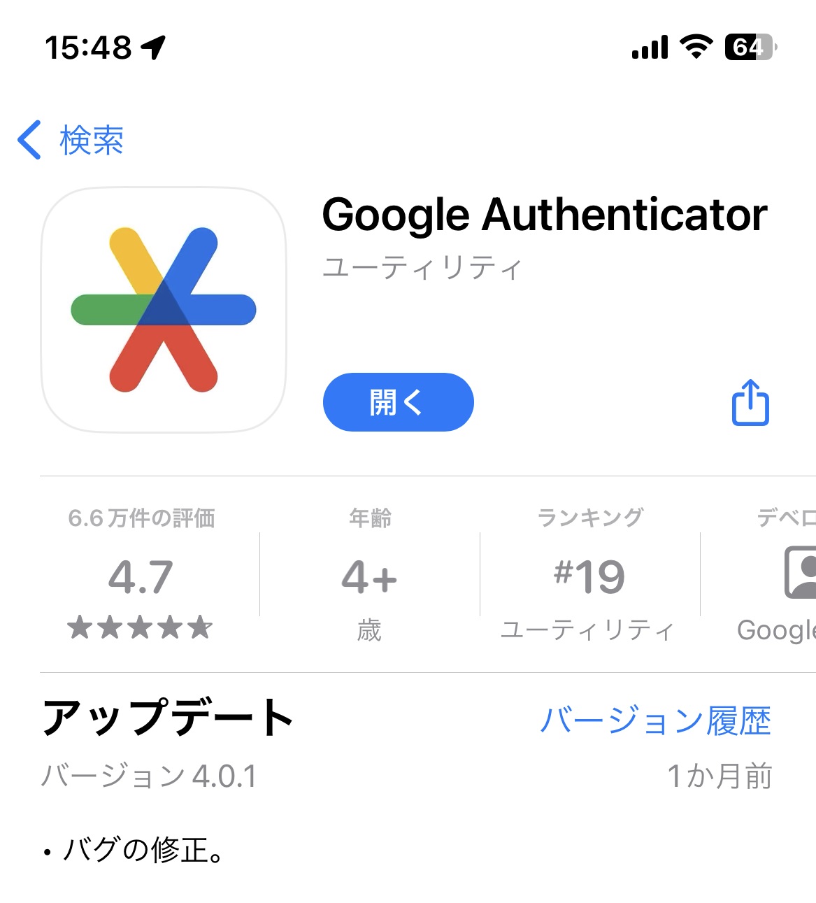 Apple App Storeより「Google Authenticator」をインストールしてください。