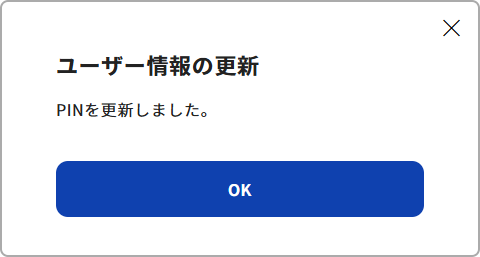 4. [OK]ボタンをクリックしてダイアログを閉じます。PINの登録・更新が完了しました。