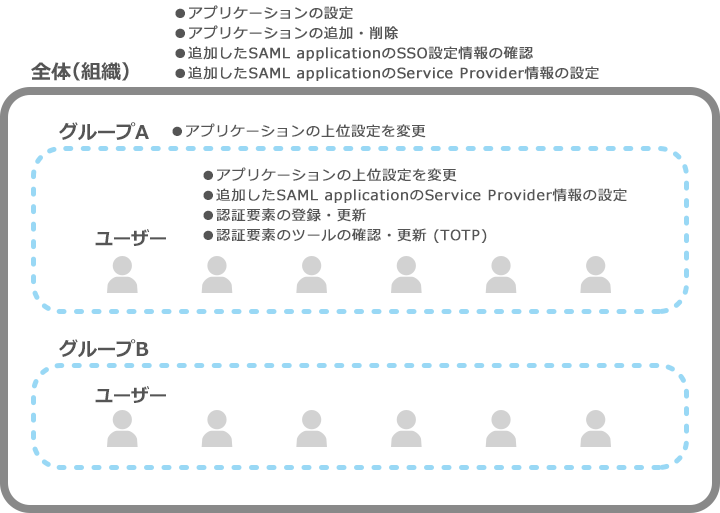 [ヒント]登録や設定を「全体 → グループ → ユーザー」の順で進めるとスムーズに作業が行えます。
