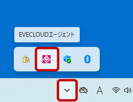 1. タスクトレイを開き、「EVECLOUDエージェント」アイコンをクリックしてメニューを開きます。