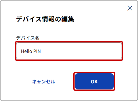 2. デバイス情報の編集ダイアログが起動します。デバイス名を編集後、[OK] ボタンを押します。