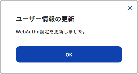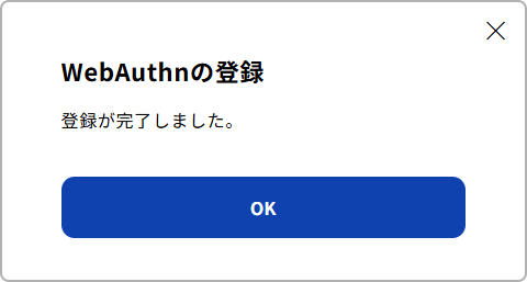 WebAuthnの登録は完了です。WebAuthn登録の情報は自動で保存されます。
