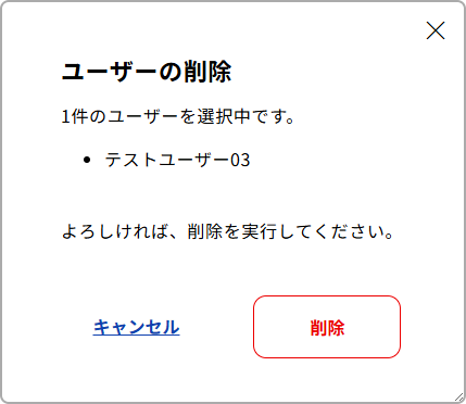 [注意事項]ユーザーの削除は不可逆の操作となります。実行前によく確認してください。