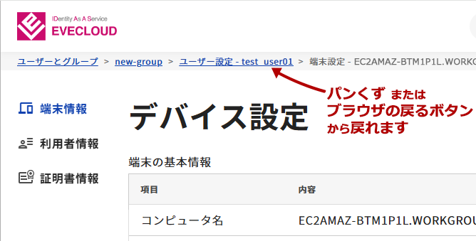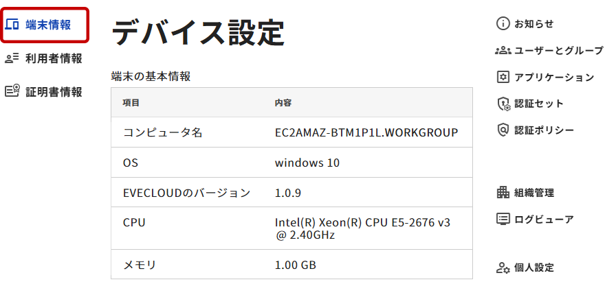 ※管理者権限・グループ管理者権限のみ情報の確認・編集が可能(一般ユーザー権限では端末情報の確認はできません)