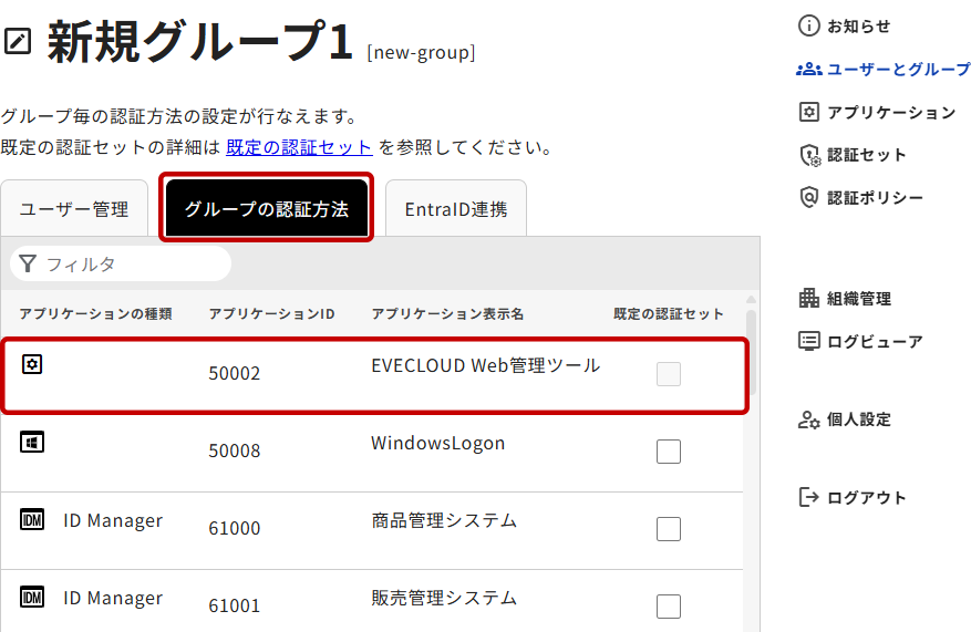 • 既定の認証セットが利用可能です。詳細は「既定の認証セット」を参照してください。