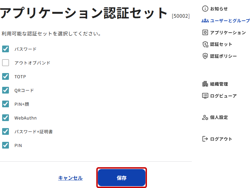 3. 利用したい認証方法にチェックを入れ、[保存]ボタンをクリックして設定を完了させます。