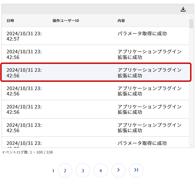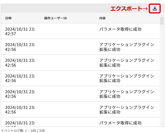 検索結果のリスト上部にあるdownloadアイコンからCSVによるログのエクスポートが行えます。