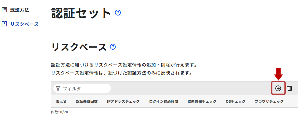 - リスクベース一覧の右上にある[+]アイコンをクリックします。
