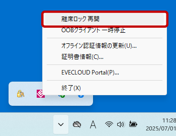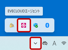- タスクトレイを開き「EVECLOUDエージェント」(EVECLOUDのアイコン)をクリックします。