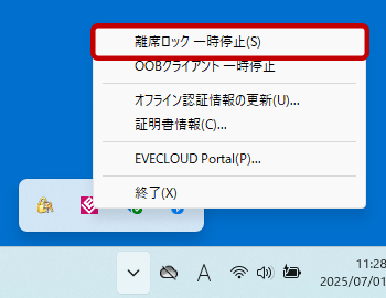 - 開いたメニューから「離席ロック 一時停止」を選択します。
