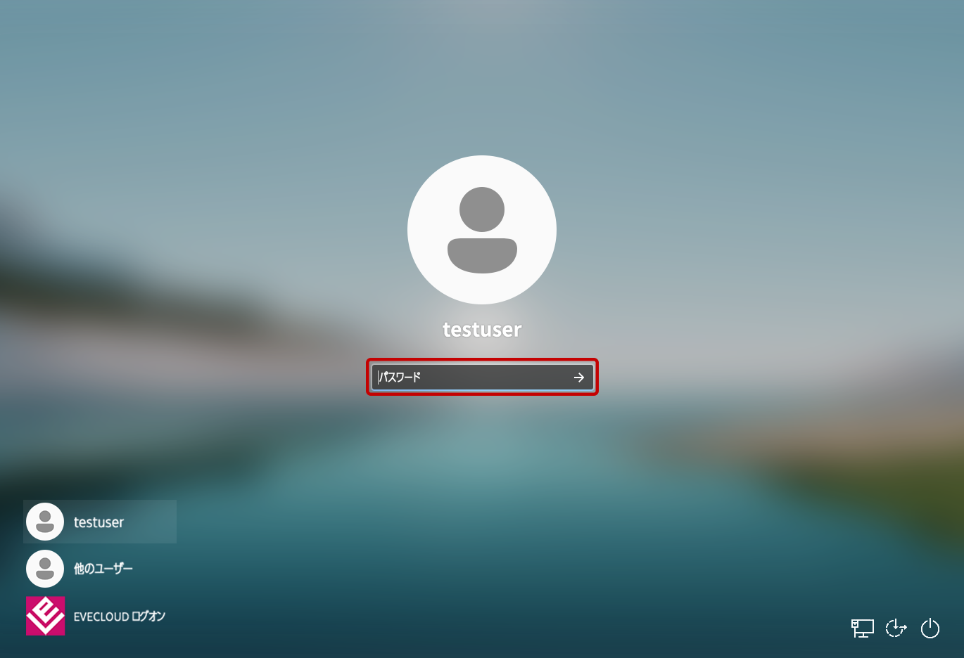 - 再起動後のWindows にサインインする際、EVECLOUD認証 のWindowsログオン画面が表示されます。組織管理者から指示された認証方法でログオンしてください。